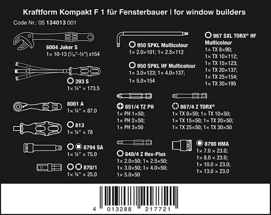 Screwdriving tools for window work 35 pieces Wera Kraftform Kompakt F 1 ref.134013