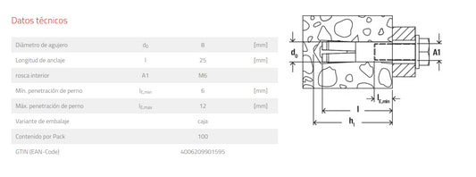 Caja 100 Uds Anclaje de Impacto EA M6 x 25 N Fischer