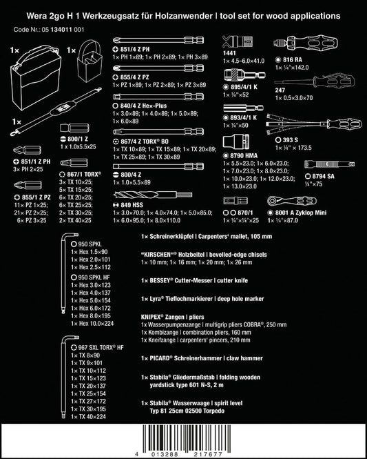 Juego de herramientas para trabajos en Madera 134 piezas Wera 134011