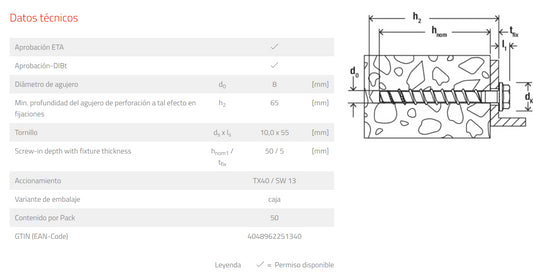 Caja 50UD Taco SX 8X40 + Tornillo 5X50 Fischer