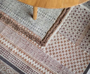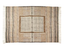 Alfombra rectangular Andrea House tejida en algodón con un diseño étnico y boho en tonos cálidos marrones, naranjas, beige y blanco, decorada con flecos laterales que aportan carácter visual y textura. Su estilo acogedor la convierte en pieza ideal para salones, dormitorios o zonas de paso donde se quiera sumar calidez y personalidad al ambiente.