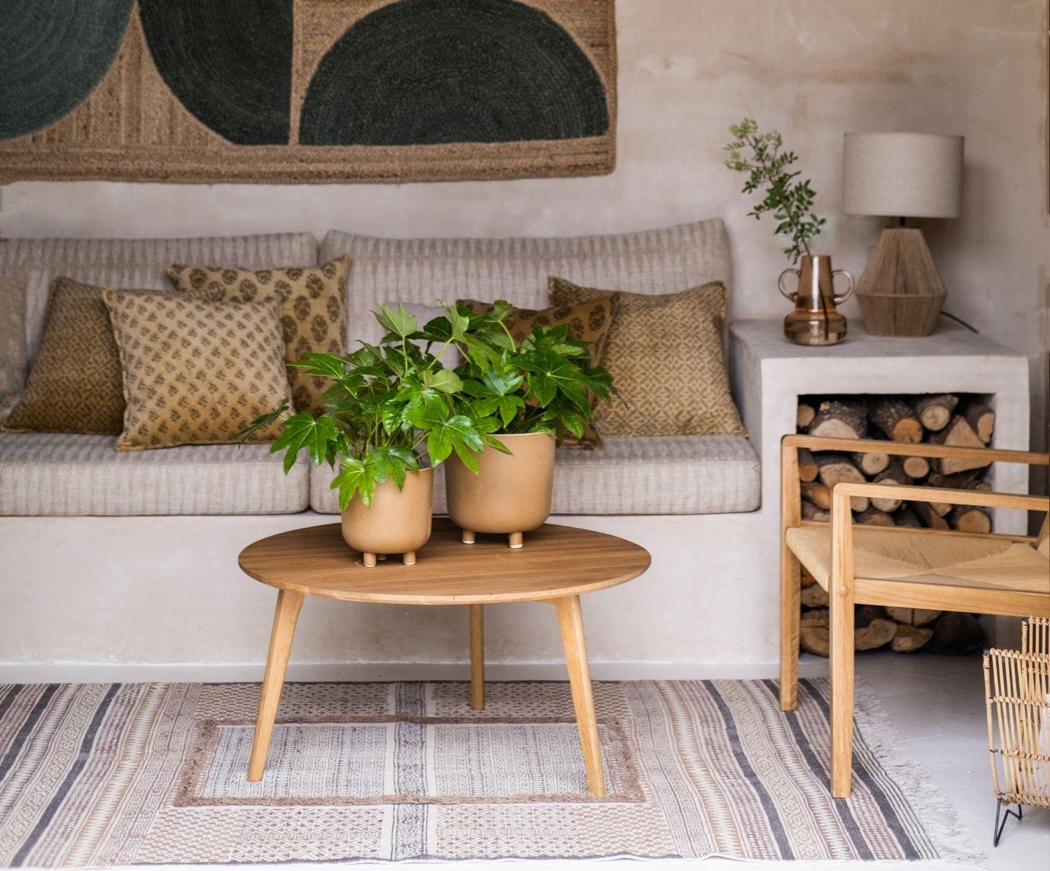 - Flecos en los laterales: detalle artesanal que realza el acabado y el estilo decorativo global.