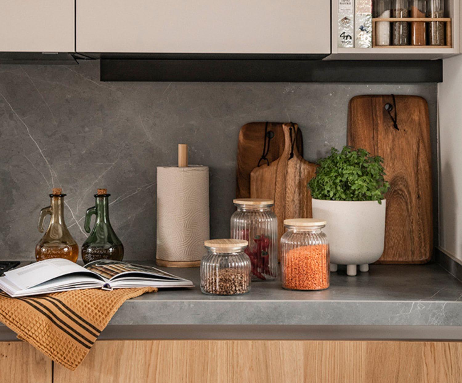 • Tapa de bambú natural: aporta un acabado cálido y elegante, y combina perfectamente con interiores de cocina de estilo nórdico o moderno.