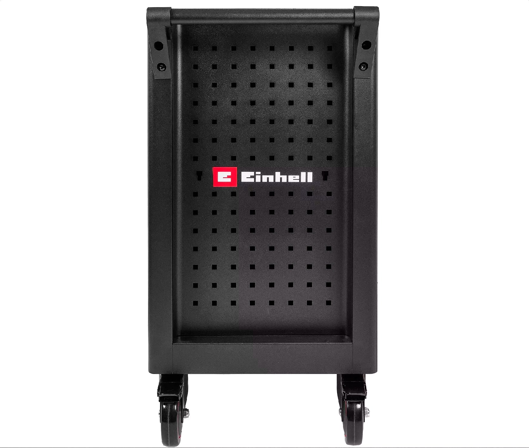 - Construcción en acero resistente, con asas metálicas robustas y un diseño profesional en negro con acentos rojos de Einhell