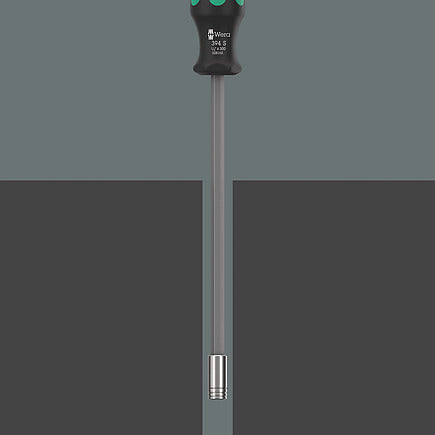 - Hoja rígida de 300 mm: Permite alcanzar tornillos en zonas de difícil acceso o espacios reducidos.