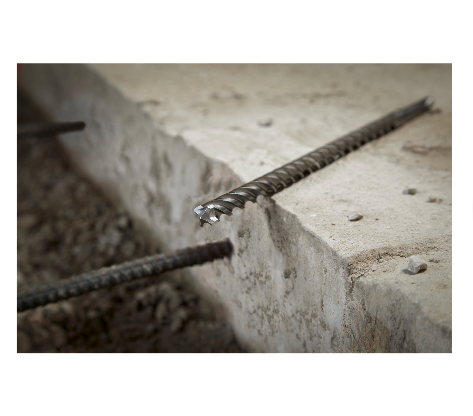 • Resistencia al refuerzo mejorada: con protectores y geometría optimizada, ideal para perforar hormigón con barras metálicas sin que se atasquen.