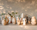Jarrón decorativo Andrea House modelo Dulia fabricado en gres cerámico blanco, con diseño minimalista y proporciones equilibradas que aportan elegancia y sencillez a cualquier espacio interior. Su tamaño medio lo hace perfecto para colocar sobre mesas, aparadores o estanterías, funcionando tanto como elemento decorativo independiente como con flores secas o ramas ornamentales.