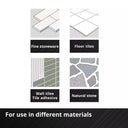 • Versatilidad de uso: Ideales para aplicaciones en áreas como baños, cocinas y superficies alicatadas, tanto en interiores como en exteriores.