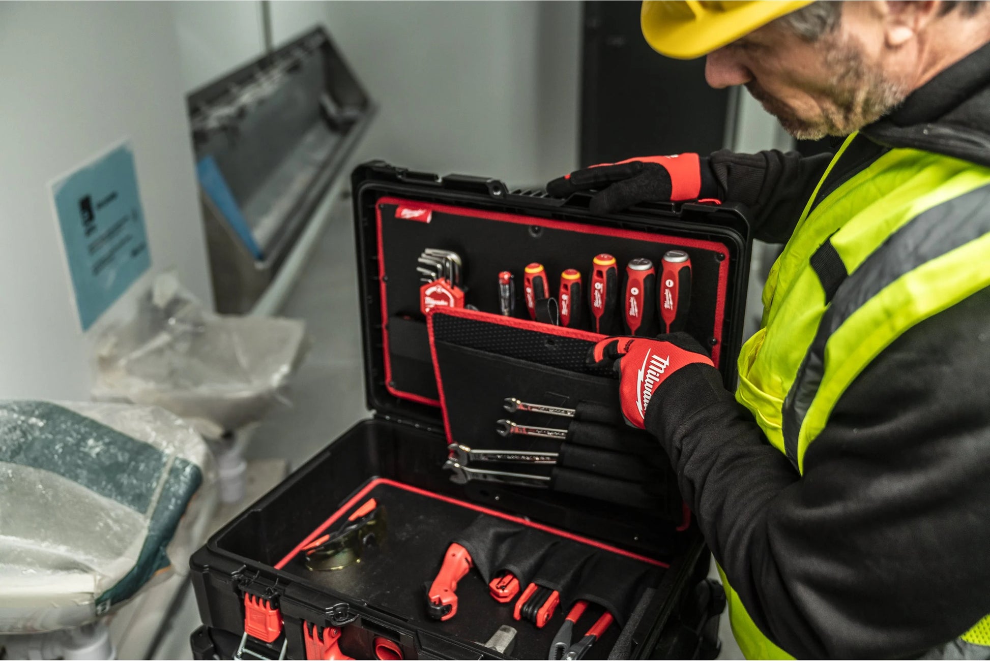 • Múltiples insertos y divisores – Configuración adaptable e ilimitada con espacio adicional para herramientas manuales favoritas.