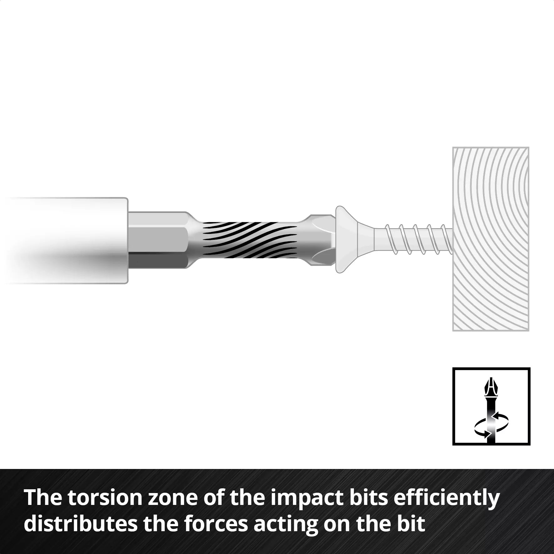 • 4 x 50mm impact bits with E 6.3 shank, also in S2 manganese phosphated steel, ideal for applications requiring longer reach.