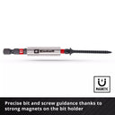 • 1 magnetic bit holder 60 mm , with E 6.3 shank and stainless steel sleeve, which ensures a firm and precise hold of the bits during work.