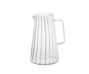 One-liter glass water pitcher with a classic striped design and ergonomic handle , perfect for serving water or other beverages at the table or keeping them cool in the refrigerator. Its timeless style complements any table setting and décor.