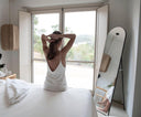 Add spaciousness, light, and a contemporary touch to any room with this elegant Andrea House floor mirror . Its minimalist design with a black aluminum frame makes it a versatile piece, ideal for bedrooms, dressing rooms, hallways, or living rooms.