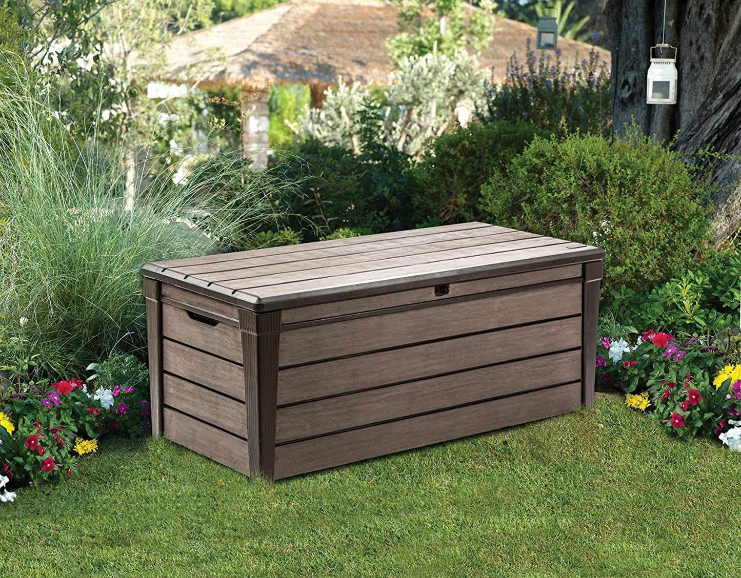 Brushwood Garden Chest by Keter. This fantastic 100% outdoor resin chest will allow you to organize your garden. Revolutionary design in top quality materials that, in addition to withstanding the elements, can be painted with any traditional exterior paint, allowing you to personalize your chest.
