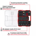 The Einhell 32-piece impact socket set (model 49109288) is a complete and robust set, designed for demanding jobs in the automotive, industrial and maintenance sectors.