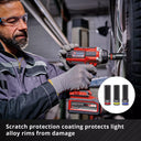 12 impact sockets, 40 mm long, made of chrome-molybdenum (CrMo) steel phosphated with manganese, offering greater resistance than chrome-vanadium (CrV) steel.