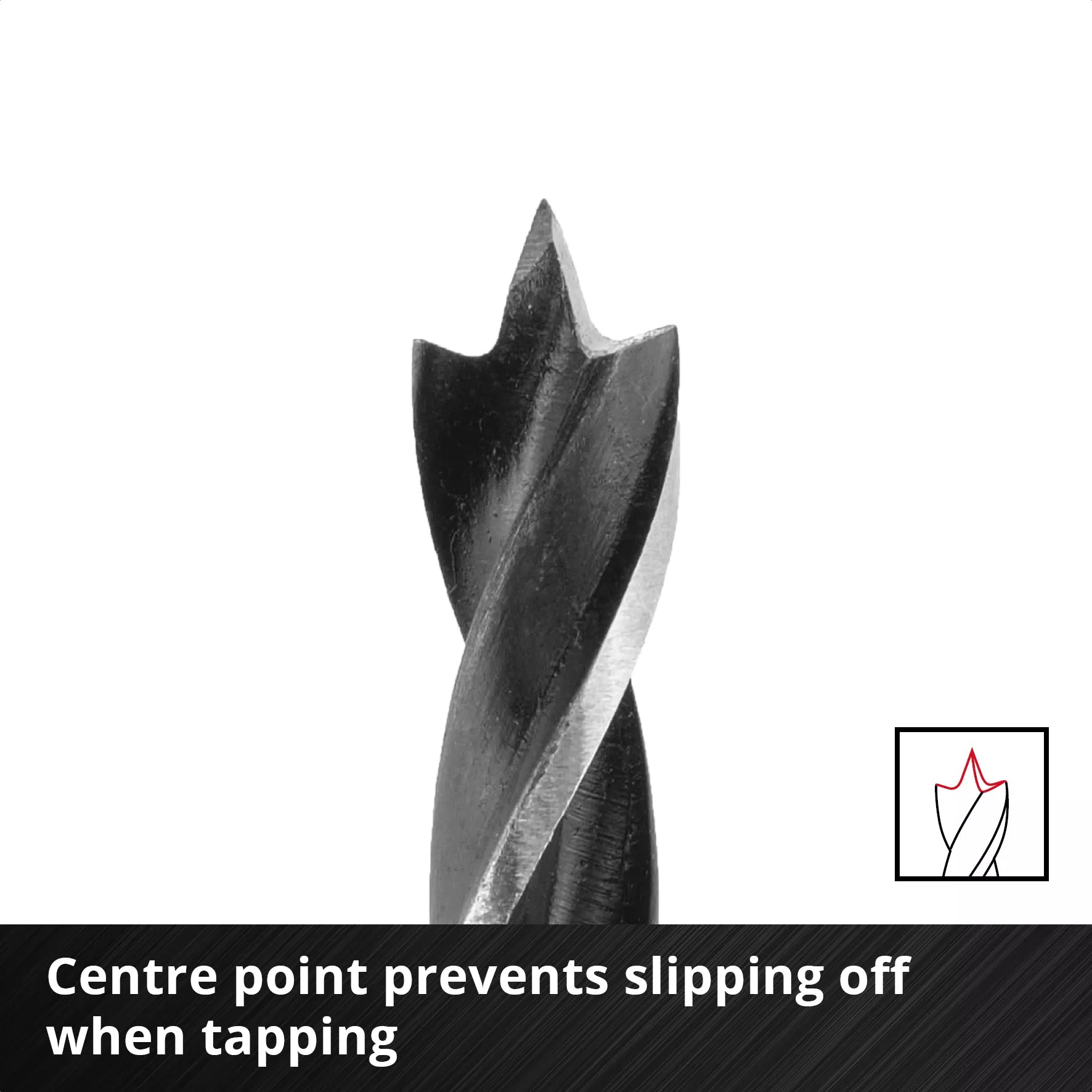 • 3 wood drill bits of 4, 5 and 6 mm, made of C45 steel with E 6.3 shank and burnished black finish.