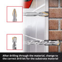 • After drilling into ceramic material, it is advisable to switch to a drill bit suitable for the base material, such as a concrete or masonry drill bit.