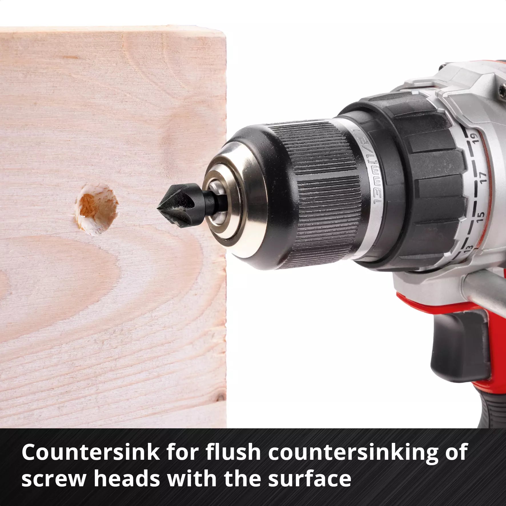 • 1 x 12 mm countersink with six cutting edges and E 6.3 shank.